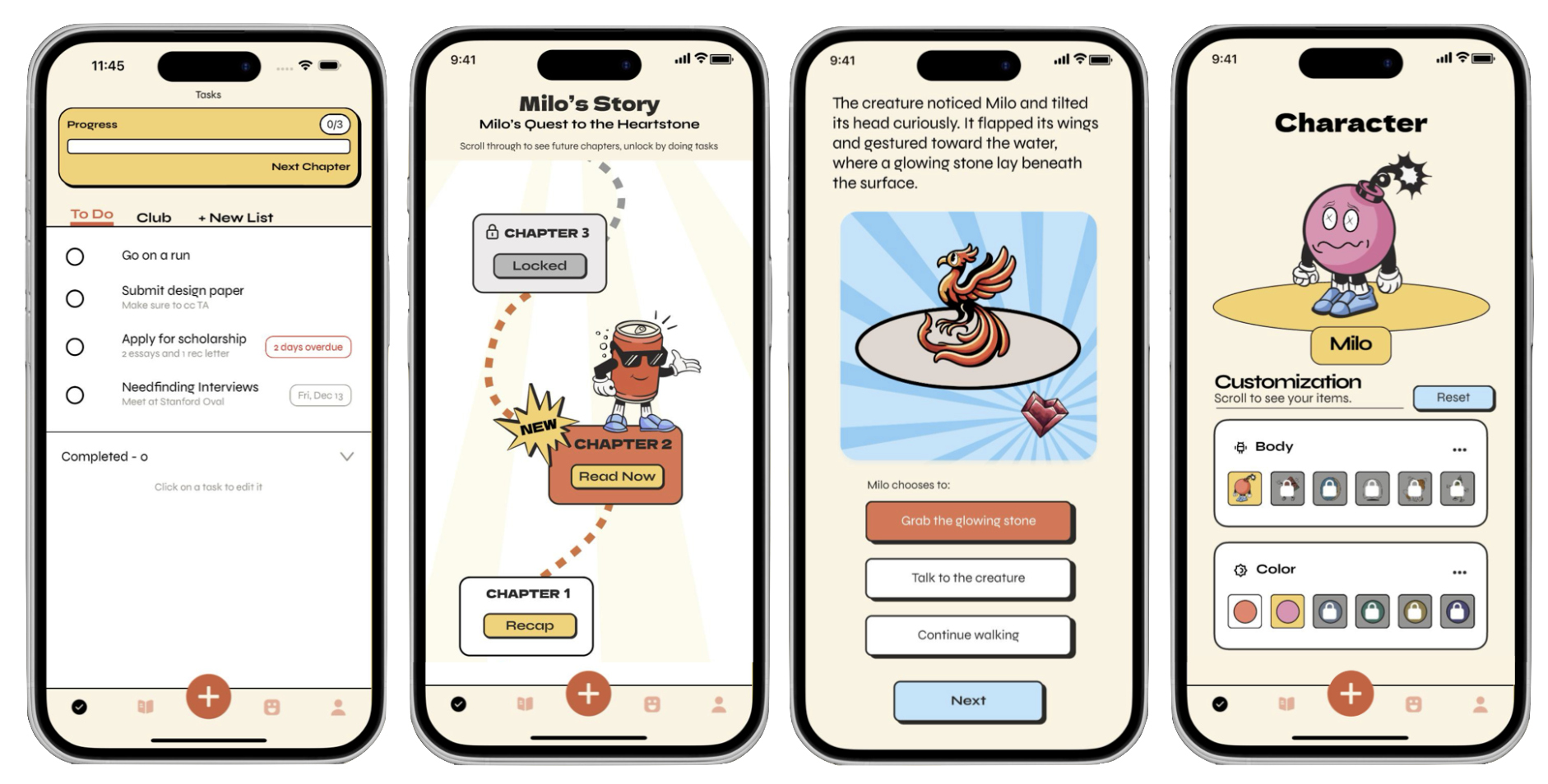 Over a 10-week quarter (and what felt like a 10-week hackathon) in CS 147: Introduction to Human-Computer Interaction Design, my team and I tackled design challenges within the studio theme: Design for Behavior Change. We first conducted needfinding interviews to deeply understand user challenges, then designed, prototyped, and tested ideas for innovative mobile applications.